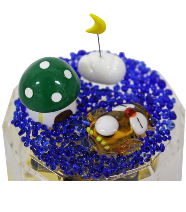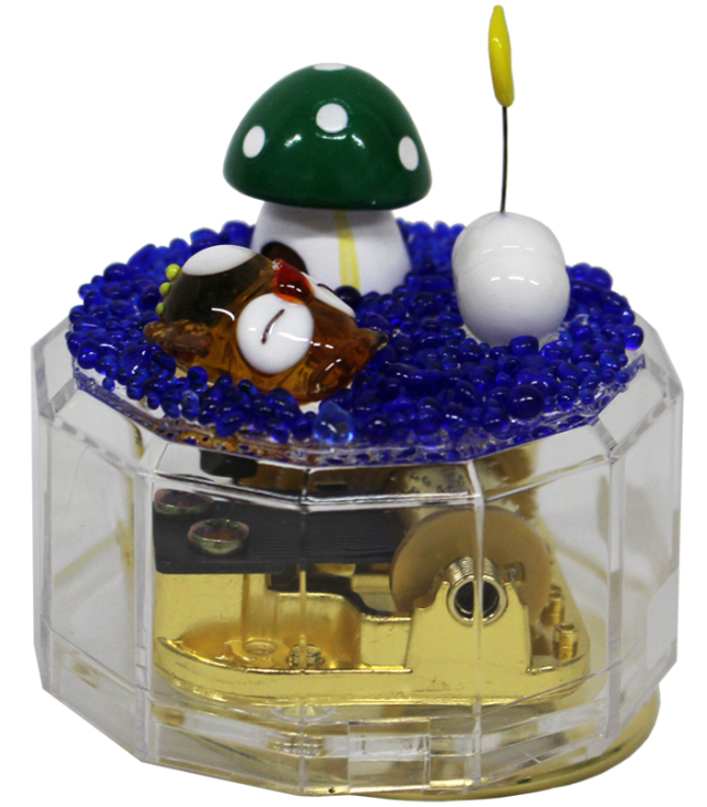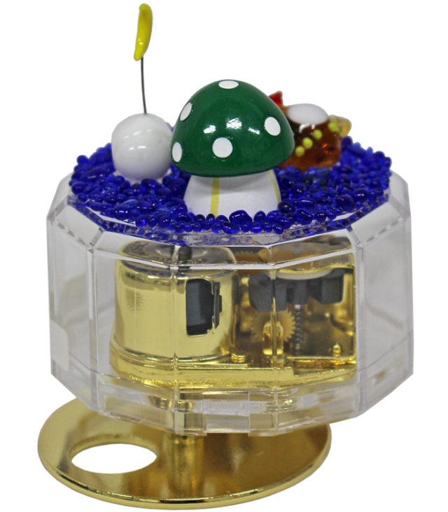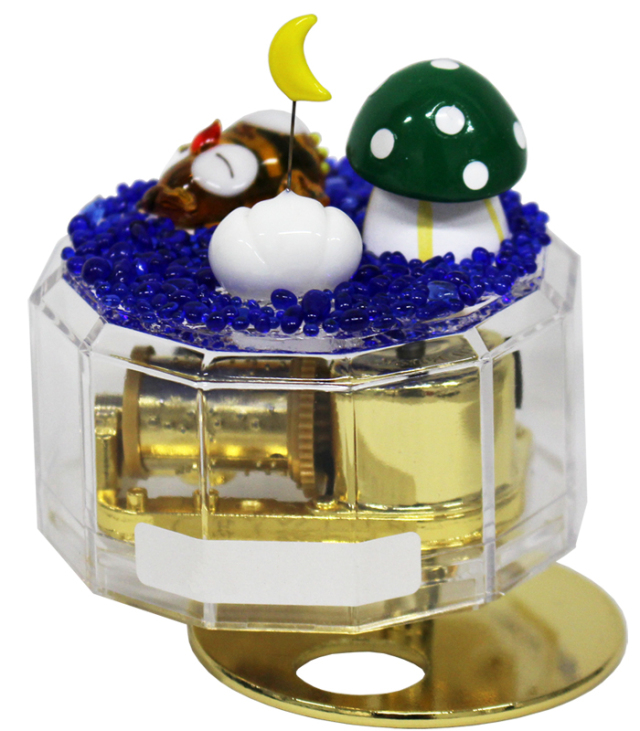 12角型のクリアケースオルゴールにガラスフィギュアを自由にトッピング。コレクションにも最適なコンパクトな手のひらサイズです。底面のネジを回すと音色が流れます。世界に一つだけのオルゴールを作成してみませんか?※写真は完成一例です。